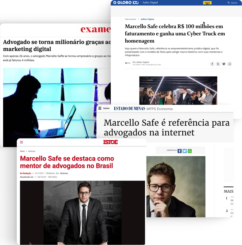 O Ecossistema SAFE, liderado por Marcello Safe, é o portal para este nível. Não se trata de um curso, mas de um ambiente de transformação meticulosamente desenhado para os inconformados, os ambiciosos, os que buscam não apenas otimizar o presente, mas construir o futuro da advocacia de elite no Brasil. Aqui, estratégias de negócios avançadas encontram networking poderoso e experiências transformadoras. Prepare-se para construir seu legado.